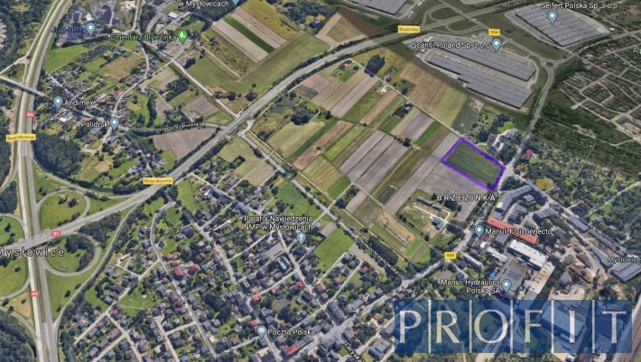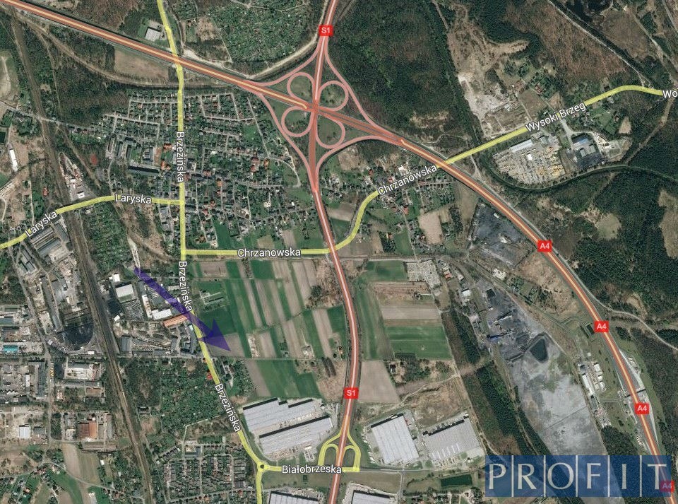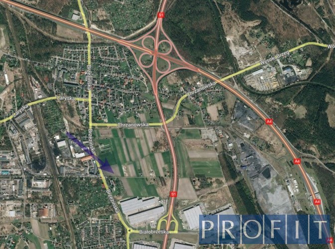 Lokalizacja: Mysłowice ul. Brzezińska, okolica węzła autostrady A4 i obwodnicy GOP S1, w pobliżu centra logistyczne ( hale magazynowe i produkcyjne).