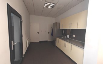 - część o charakterze biurowo-socjalnym o powierzchni ok. 130m2 w dwóch samodzielnych częściach : biurowa - 2 pokoje ,2 toalety oraz aneks kuchenny oraz osobna część socjalna pomieszczenie śniadań ,toaleta