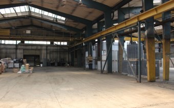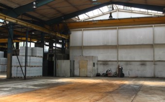 - Hala 2.183,65 m², trzynawowa, wysokość 5-5,5m, doświetlona światłem dziennym, posadzka betonowa, każda z naw wyposażona w suwnicę 5T, wysokość do haka suwnicy 3,68m.
