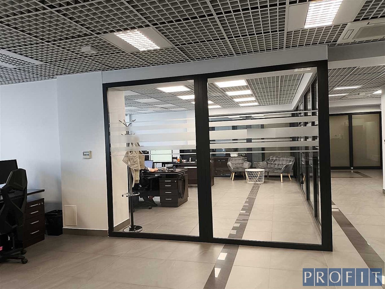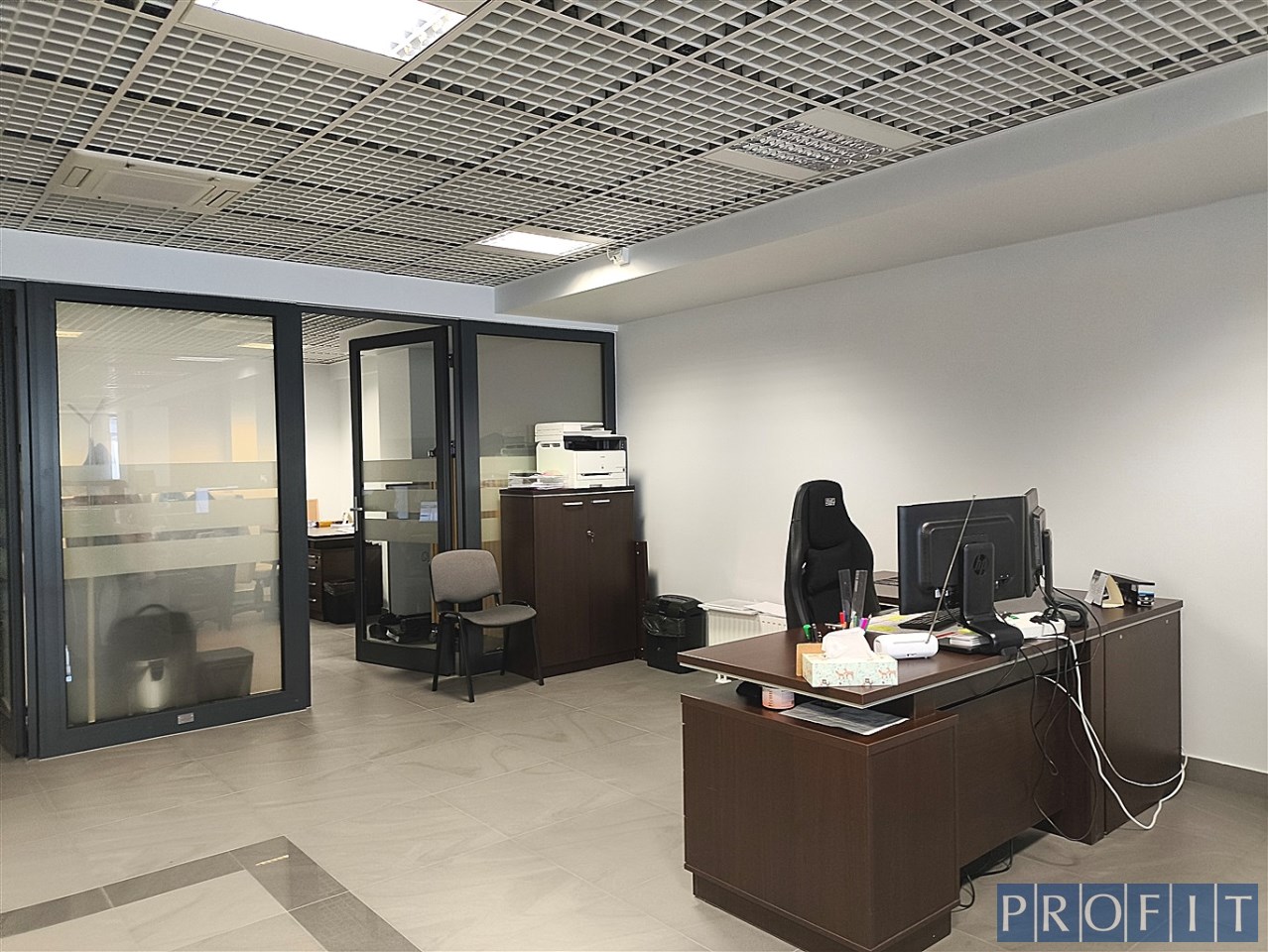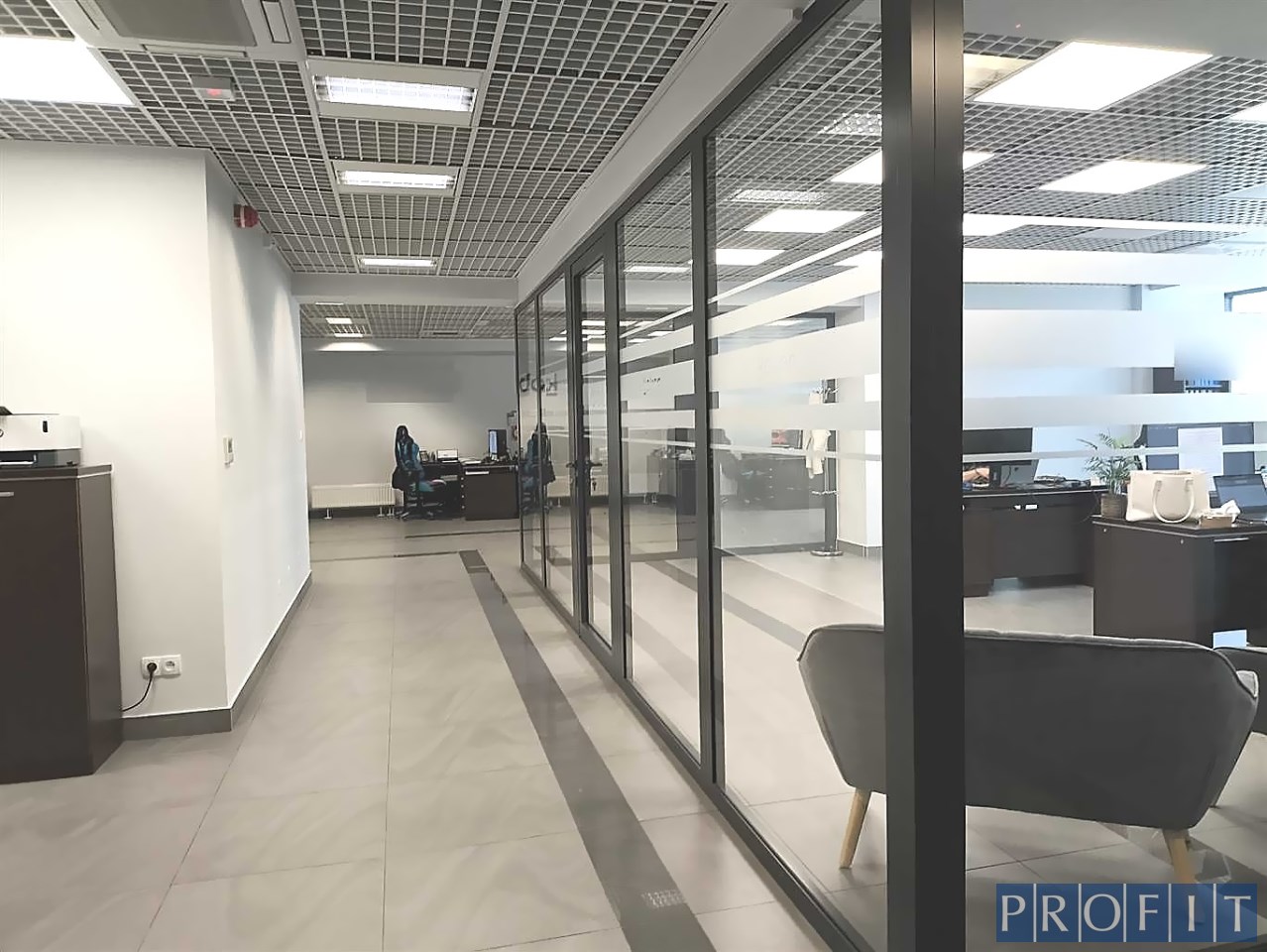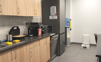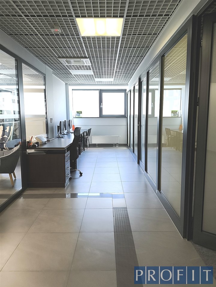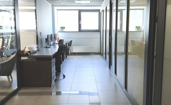 Składa się z powierzchni open space, salki spotkań , 3 gabinetów , aneksu kuchennego i serwerowni . Toalety w części wspólnej budynku.
