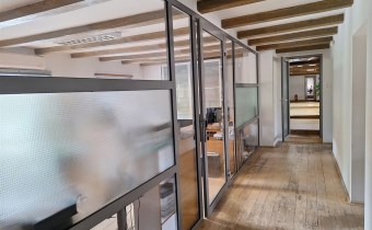 Nowoczesny standard wykończenia powierzchni, ścianki działowe ze szkła i aluminium, drzwi aluminiowe, zamki elektroniczne, pomieszczenia specjalne: serwerownia. Instalacje: wod-kan, en. elektryczna, c.o. gazowe, teleinformatyczna, wentylacja, alarmowa. Instalacja komputerowa: pełne okablowanie budynku, łącze symetryczne-światłowód 10Mb/10Mb (własny serwer). Przy budynku wybrukowany parking.