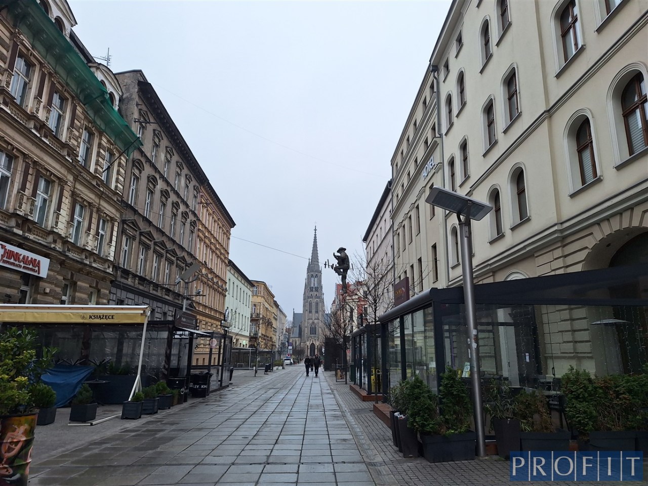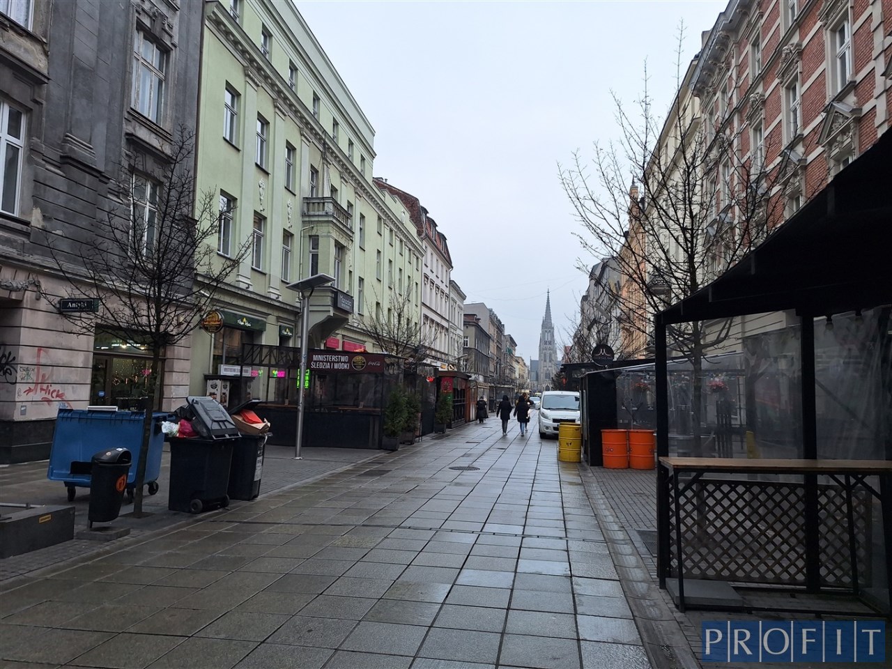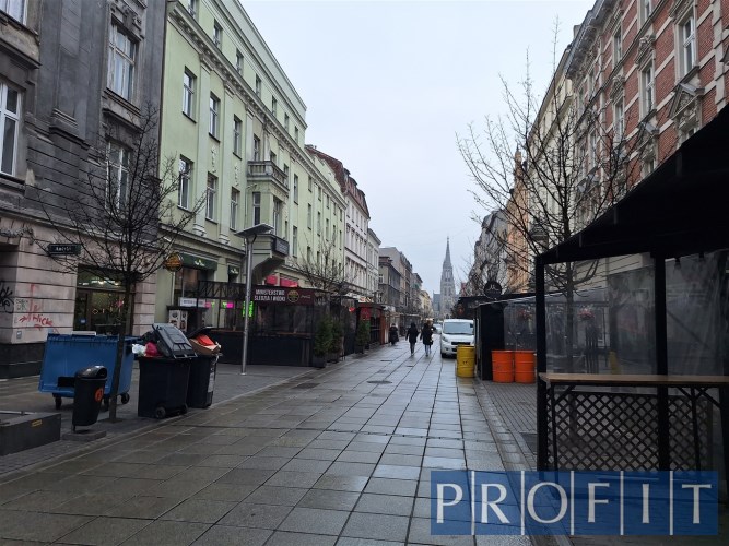 Katowice, ścisłe centrum, deptak - ul. Mariacka, w sąsiedztwie znajdują się lokale handlowe, usługowe, gastronomiczne oraz kamienice o charakterze biurowym.
