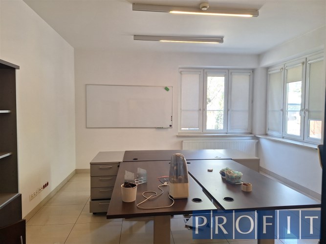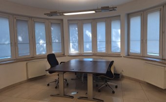 - przyziemie o powierzchni 160m2 z własnym wejściem od strony parkingu - 4 pomieszczenia (mogące służyć jako archiwa, serwerownie, magazynki , w tym kotłownia piecem olejowym), aneks kuchenny, wc