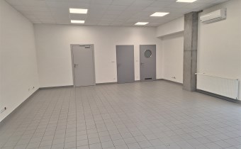 Do wynajęcia: biuro handlowe 81m² znajdujące się na parterze budynku biurowego z częścią usługowo-handlową. Przeszklenie od frontu, bezpośrednie wejście do lokalu. Lokal składa się z jednej otwartej powierzchni , małego aneksu kuchennego , małego magazynku oraz wc. W budynku centralne ogrzewanie, klimatyzacja, sieci dedykowane.