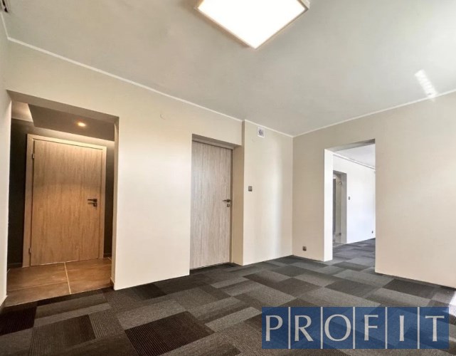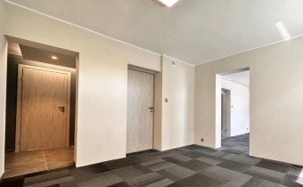 Do wynajęcia zamknięty aneks biurowy ~ 84m2 znajdujący na parterze, z samodzielnym wejściem. Składa się z 4 pokoi, aneksu kuchennego i wc.
