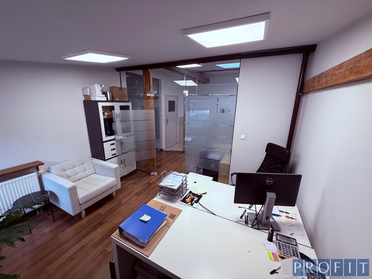 Wysoki standard oddawanej powierzchni, ścianki działowe ze szkła, na podłodze panele, oświetlenie ledowe, klimatyzacja, alarm.