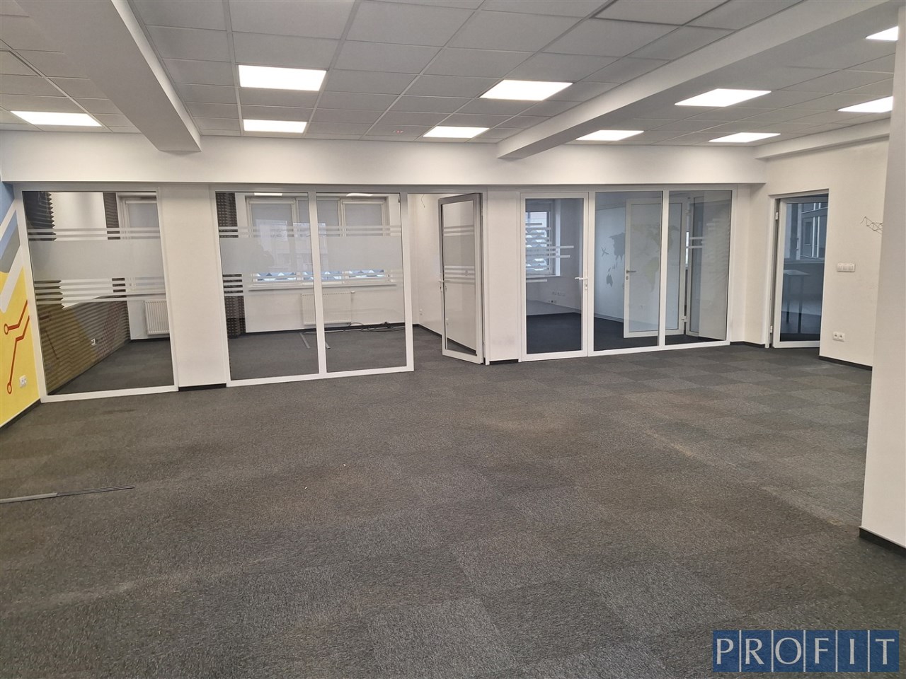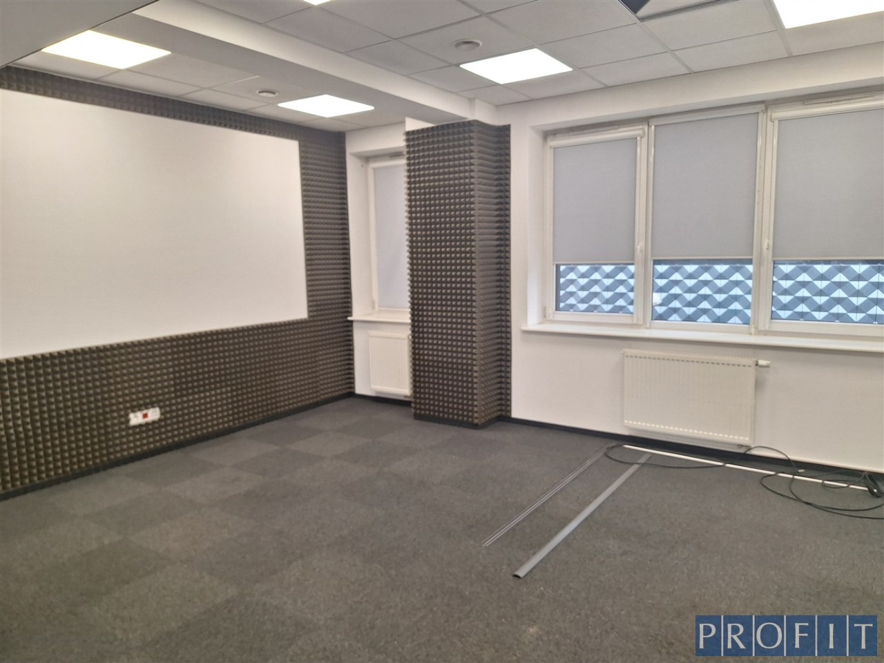 - podłoga w biurach - wysokiej jakości wykładzina dywanowa lub gładka