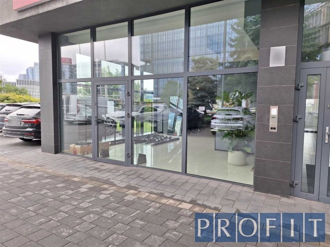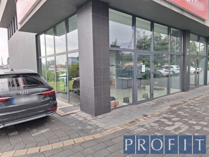 Do wynajęcia: biuro handlowe 97m² na parterze biurowca. Duże witryny. Możliwość umieszczenia reklamy nad lokalem.