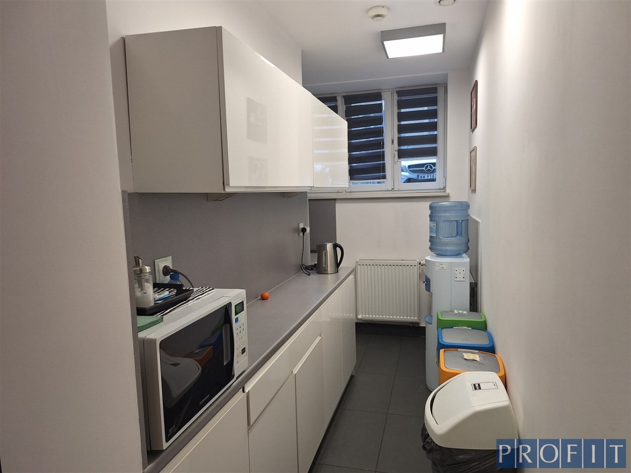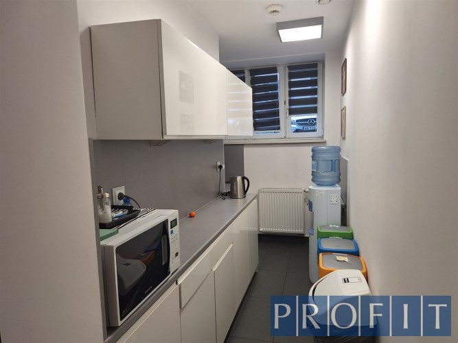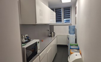 Składa się z 4 pomieszczeń biurowych, aneksu kuchennego (w pełni wyposażony min. zlew, lodówka, mikrofalówka, czajnik elektryczny, meble kuchenne ze stołem śniadaniowym), 2 x wc.