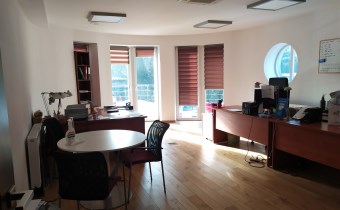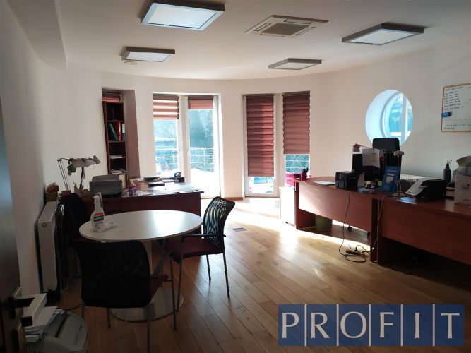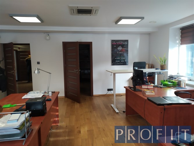 Składa się z 5 pomieszczeń biurowych, aneksu kuchennego (w pełni wyposażony min. zlew, lodówka, mikrofalówka, czajnik elektryczny, lakierowane meble kuchenne ze stołem śniadaniowym), 2 x wc.